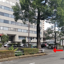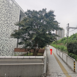屋外へ出てTAMA MEDICAL BUILDING左手に歩道を直進します。