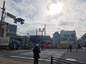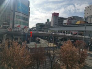 屋外へ出てTAMA MEDICAL BUILDINGを左手に歩道を直進します。